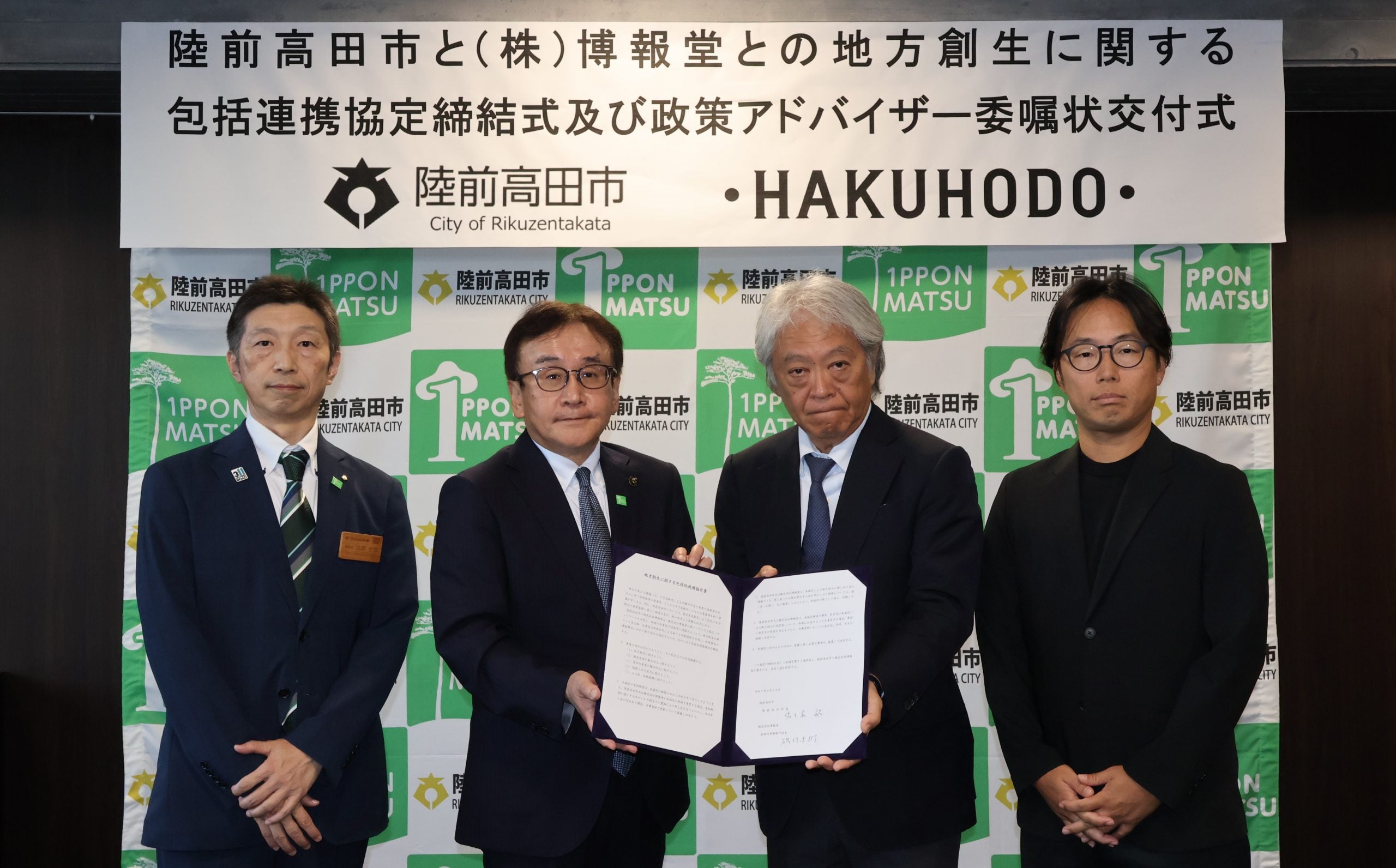 株式会社博報堂(本社:東京都港区、代表取締役社長:名倉健司、以下 博報堂)は、岩手県陸前高田市(市長:佐々木拓)と地方創生に関する包括連携協定を締結しました。また、市長付き政策アドバイザーに、博報堂の戦略クリエイティブ・ディレクター北川佳孝が就任いたします。