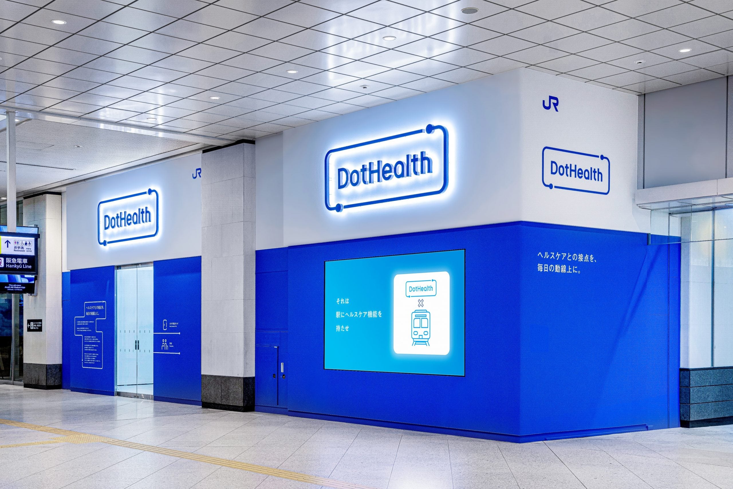 JR大阪駅構内のヘルスケアサロン「DotHealth Osaka」内に協賛ゾーンを新設し、「DotHealth Osaka」壁面のデジタルサイネージと併せて、多くのヘルスケア関連事業者が商品やサービスのプロモーションを実施できる場を提供します。