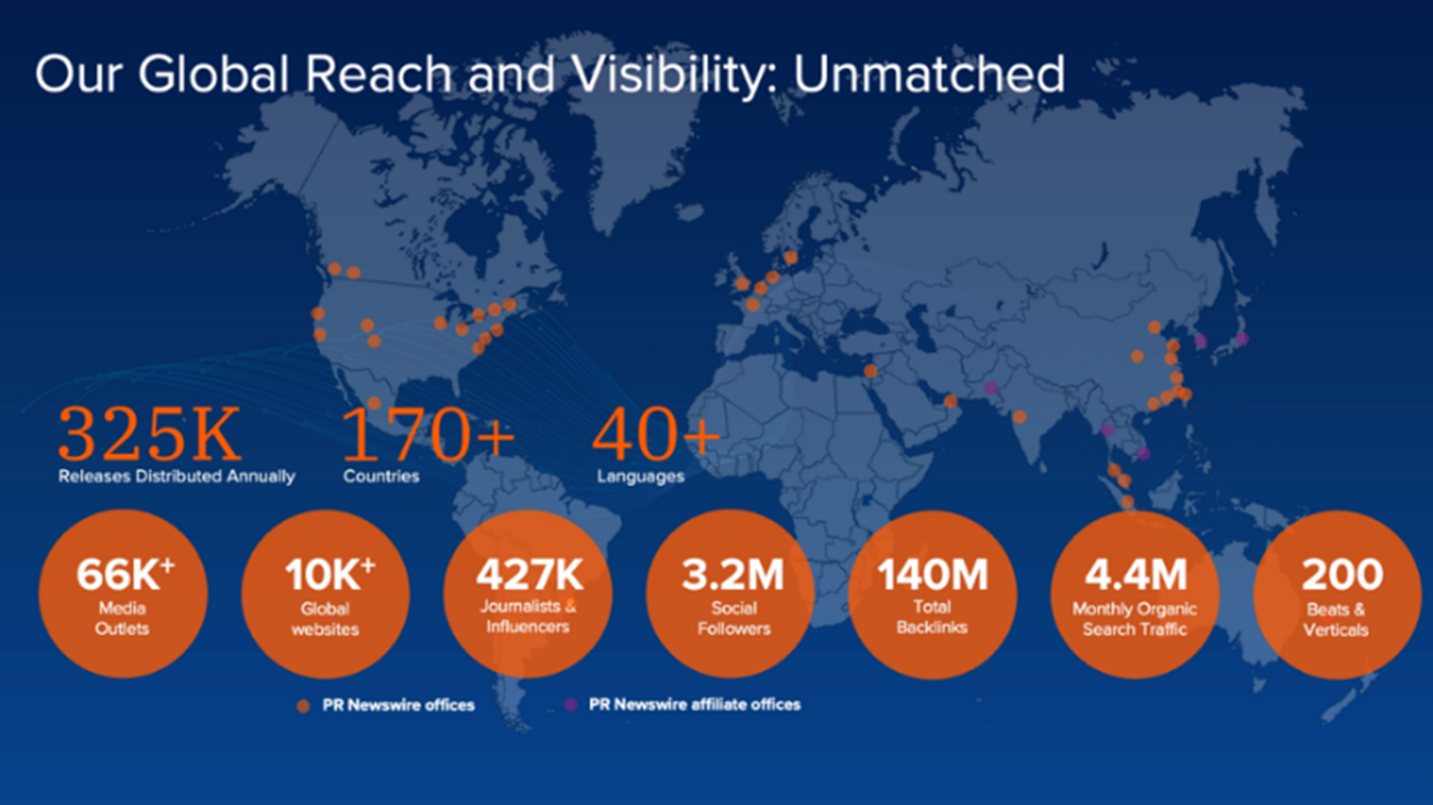 PR Newswireは業界をリードするグローバル向けのプレスリリース配信サービスを提供し、50万を超えるニュースルーム、ウェブサイト、ダイレクトフィード、ジャーナリスト、インフルエンサーなど、豊富な配信ネットワークを構築しています。コンテンツ戦略、IR関係サービス、記事掲載、SNS拡散ツールなど、PR Newswireは企業広報が直面する課題を解決する包括的なソリューション群を有しています。70年にわたり、PR Newswireは企業がニュースを世界中に発信するプラットフォームとして利用されています。