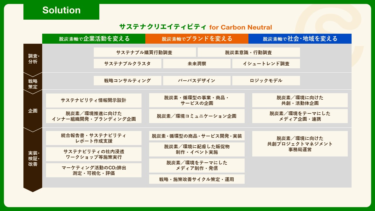 ■脱炭素ソリューション「サステナクリエイティビティ for Carbon Neutral」と支援体制