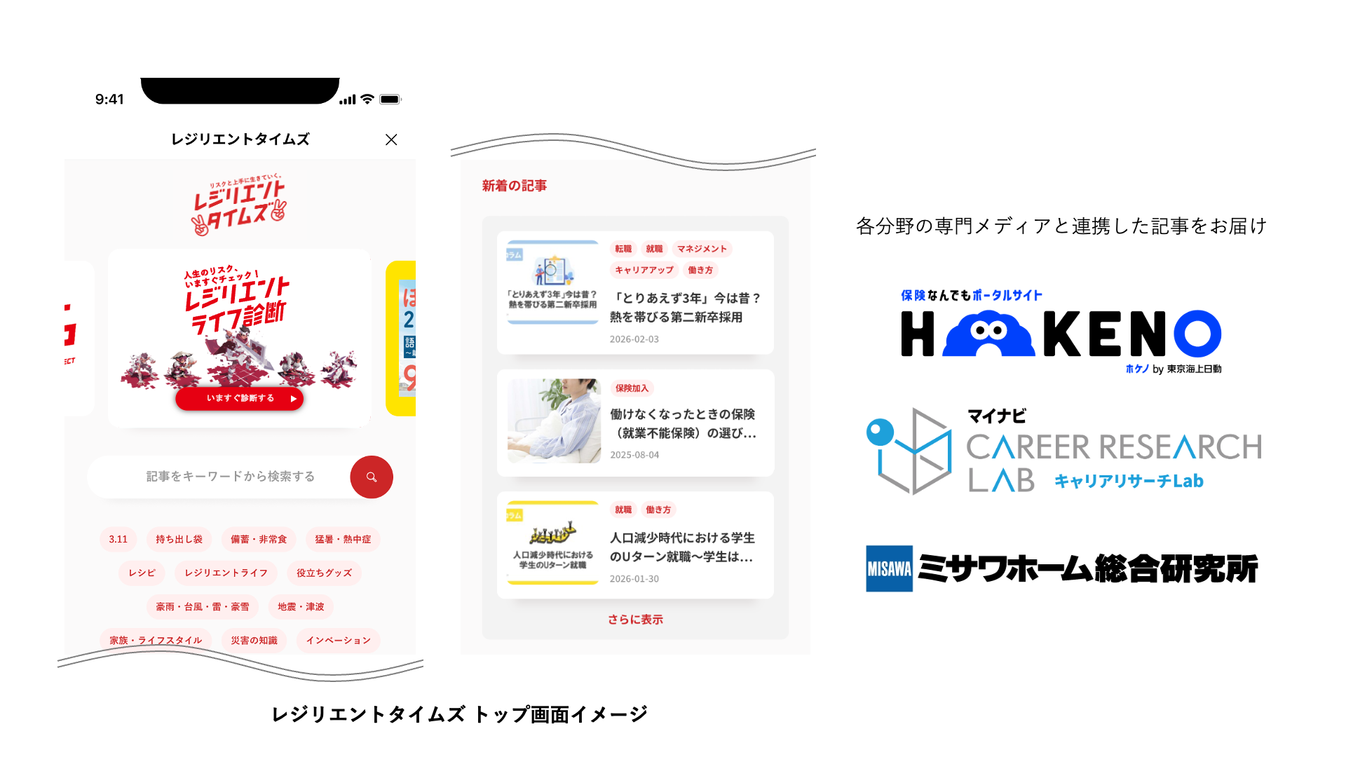 レジリエントタイプ診断で分かった「自分に足りない備え」を補うために、各分野の専門メディアと連携した記事コンテンツを提供します。診断と専門記事を組み合わせることで、「漠然とした不安」を「明確な行動」へと変換することを支援します。
