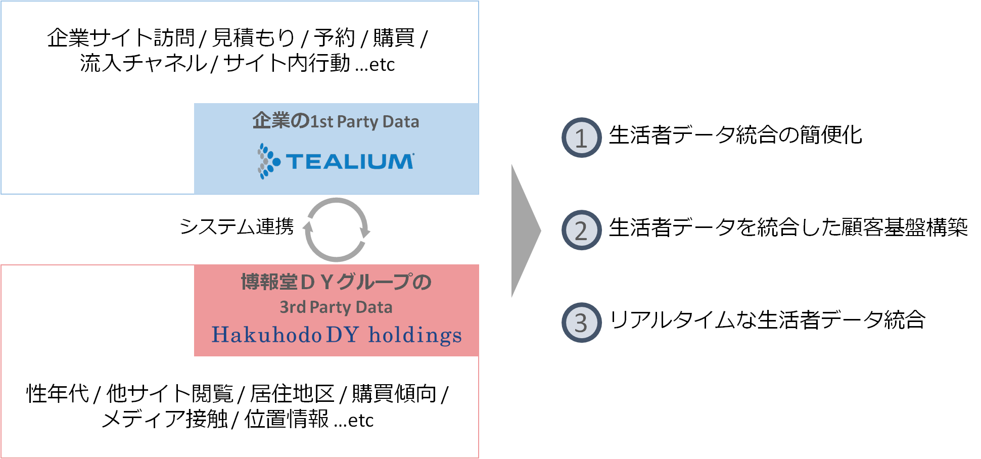 Tealiumは、企業の自社サイトのタグ・マネジメントに強みをもつ、リアルタイム統合マーケティングソリューションですが、今回共同開発したソリューションにより、企業が単体では取得できない、生活者の様々な情報(性年代、興味関心情報など)の簡便な統合と、データ統合をよりリアルタイムに行い、生活者の現在の状態に沿ったデータドリブンマーケティングを可能とし、企業のマーケティング活動の成功に貢献してまいります。