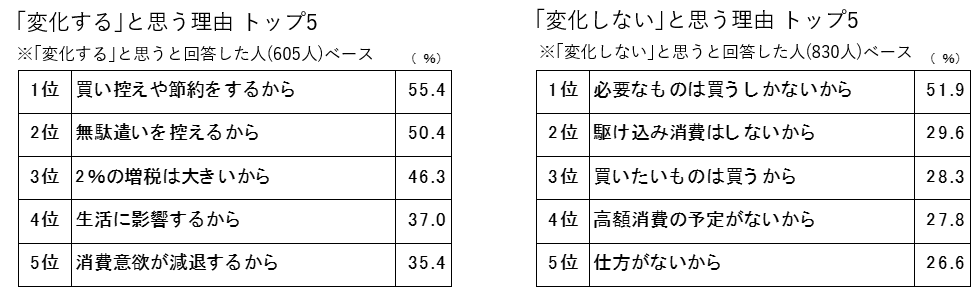 ・「変化しない」と思う理由は「必要なものは買うしかないから」が1位で突出(51.9%)。