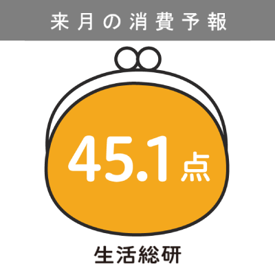 4月の消費意欲指数は45.3点。前月比+0.2ポイント、前年比-1.3ポイントと、前月からは横ばい、前年からはやや低下しました。